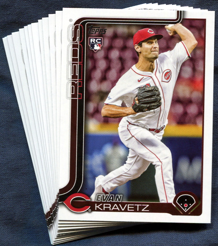 The 2025 Topps Update Cincinnati Reds Baseball Card Team Set contains 13 Cincinnati Reds baseball cards including Star Players like Rhett Lowder, Connor Joe and the rookie cards of Evan Kravetz, Tyler Callihan, Chase Petty, Eric Yang, Luis Mey and Levi Jordan. All cards in this team set are listed below.