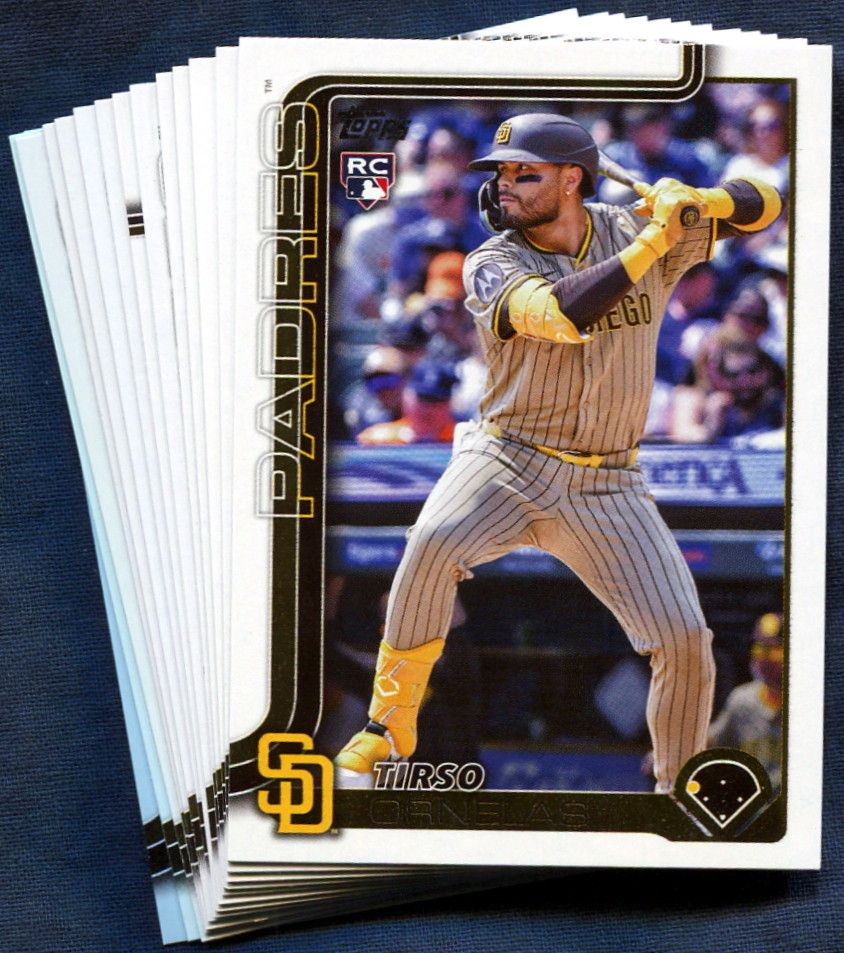 The 2025 Topps Update San Diego Padres Baseball Card Team Set contains 14 San Diego Padres baseball cards including star players like Fernando Tatis Jr, Jason Heyward and the rookie cards of Trenton Brooks, Omar Cruz, Tirso Ornelas, Ryan Bergert, Kyle Hart and David Morgan. All cards in this team set are listed below.