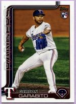 The 2025 Topps Update Texas Rangers Baseball Card Team Set contains 13 Texas Rangers baseball cards including star players like Joc Pederson, Jake Burger and the rookie cards of Daniel Robert, Gerson Garabito, Marc Church, Blaine Crim and Alejandro Osuna. All cards in this team set are listed below.