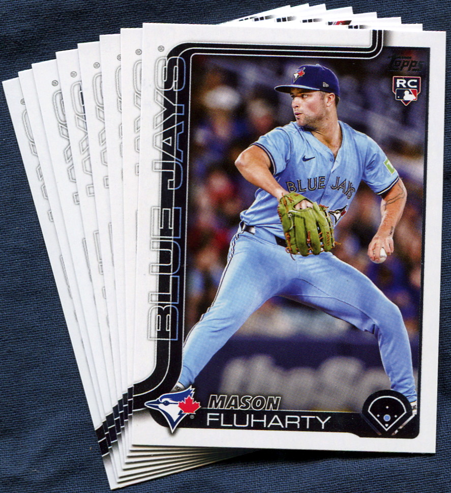 The 2025 Topps Update Toronto Blue Jays Baseball Card Team Set contains 8 Toronto Blue Jays baseball cards including Star Players like Myles Straw, Andres Gimenez and the rookie cards of Braydon Fisher, Mason Fluharty, Alan Roden and Paxton Schultz. All cards in this team set are listed below.