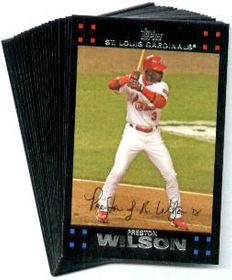 The 2007 Topps St. Louis Cardinals MLB Team Set contains 22 St. Louis Cardinals baseball cards including Star Players like Albert Pujols, Scott Rolen, Jim Edmonds, David Eckstein, Yadier Molina, Jason Isringhausen and Preston Wilson. Collecting MLB baseball cards of your favorite team is fun and great way to keep track of all your favorite players. All cards in the set are listed below.